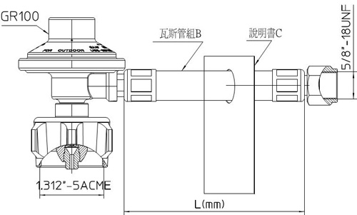 Inlet GCC structure :Thread 1.312-5ACE . With the over-flow cut and over-heat cut function
