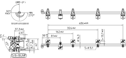 Manifolds with Alu valve dimension: Φ14.3& Φ16.0 with zinc plating Valve: Aluminum Valve (0°~90°) Inlet thread: 5/8”-18UNF